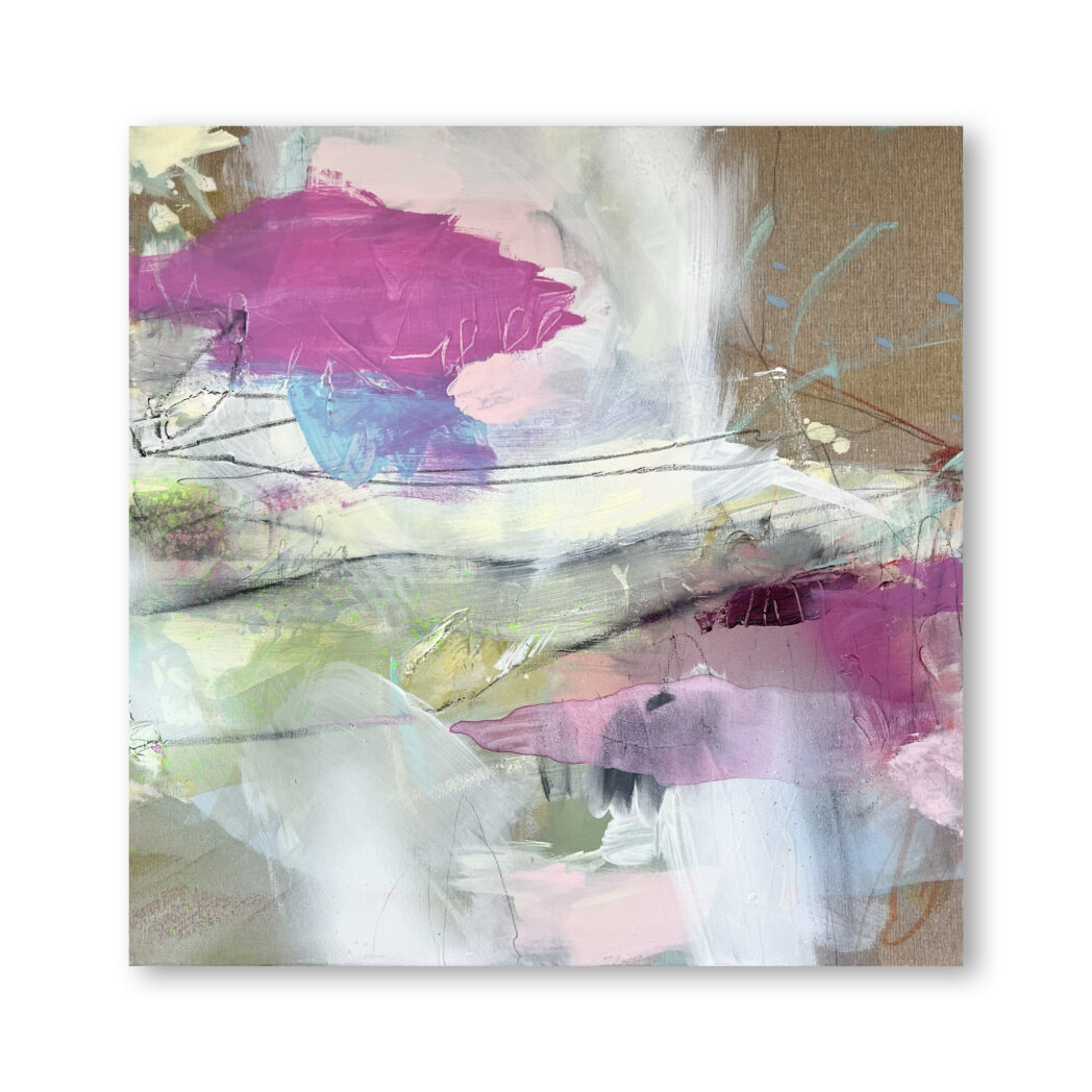 „Purple Sky“ / „ružová obloha“, mixed media na plátne, 70x70cm