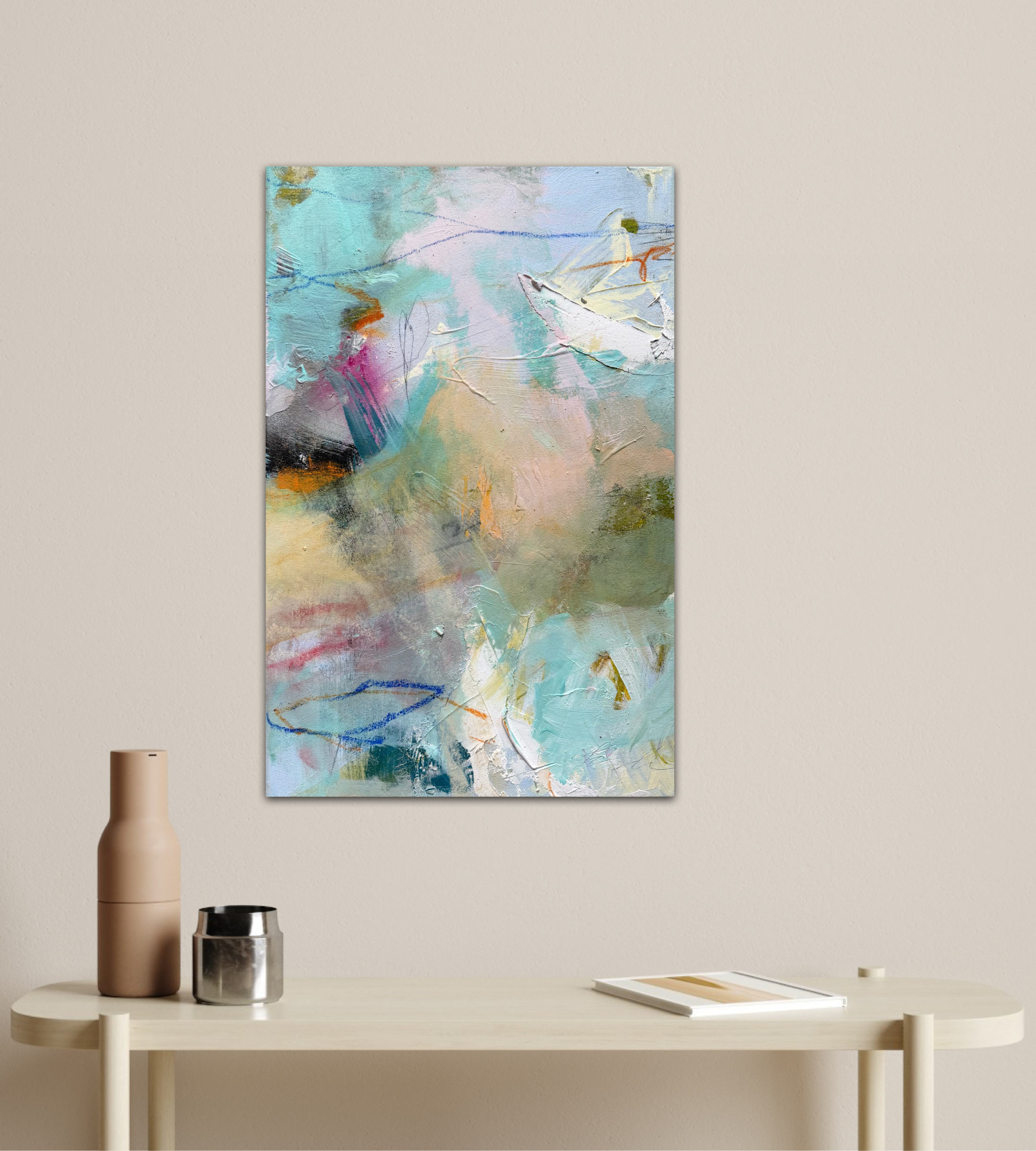 „Chilling“/“Malá loďka na mori“, mixed media on 3D canvas/mixed media na plátne 58x37x7cm